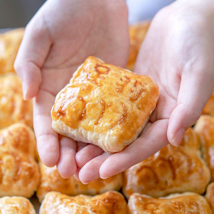 オープン当初より1番人気の和洋折衷パイまんじゅう「足羽三山」。福井市民に愛される足羽山・八幡山・兎越山の3つの山を足羽三山といい、それをモチーフに「足羽三山」が誕生しました。144層からなる折パイ生地で北海道十勝産の皮むき小豆あんとカスタードを包んだ「小豆」、新商品の黒糖あんに福井県産ブランド米いちほまれの餅入「黒糖」の2種類入りです。