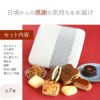 白い箱に7種のスイーツを入れ、敬老の日用専用帯を巻きお届けします。