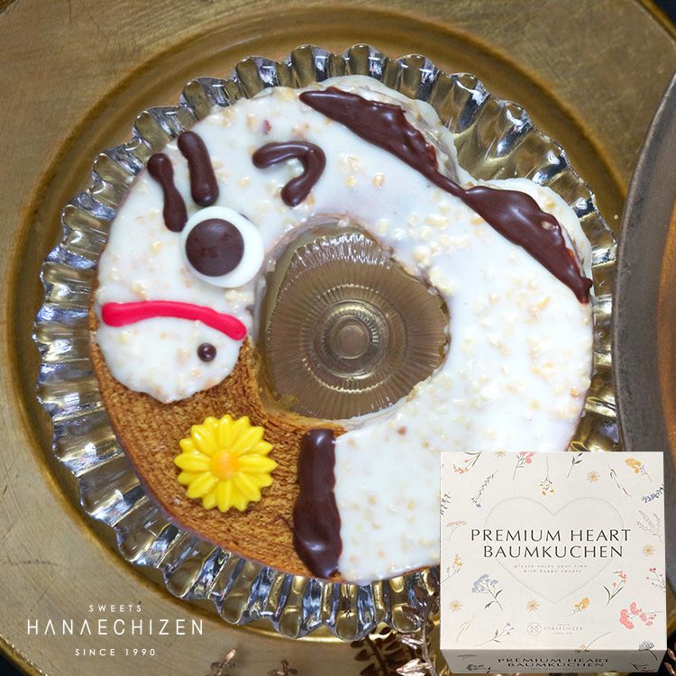 厳選素材を使いしっとり焼き上げ、 2026年干支の「午」をイメージし 一つ一つ丁寧にチョコレートでデコレーションした気持ち伝わるキャラメル風味のハートの形のバウムクーヘンです。