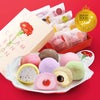 【苺】 白餡(国内製造)、餅粉、砂糖、生クリーム、水飴、苺ジャム、卵/トレハロース、乳化剤、香料、pH調整剤、増粘多糖類、着色料(赤3、赤106)(一部に卵・乳成分・大豆を含む)